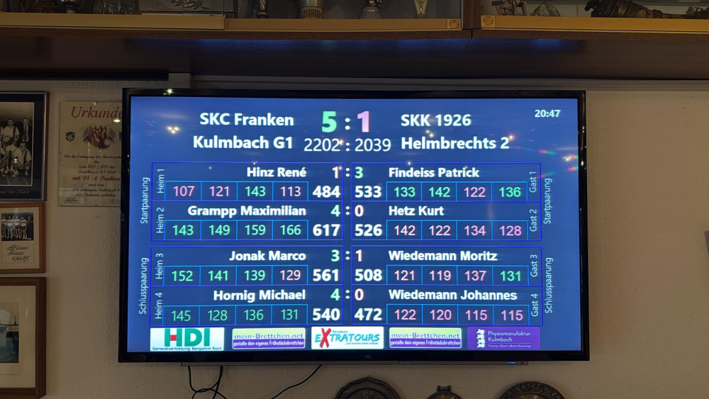 SKC Franken Kulmbach - SKK 1926 Helmbrechts 2 2202 - 2039 (5:1)