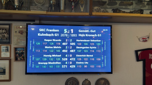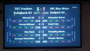 Zum Heimspiel des 12. Spieltages kam die G2 von Blau-Weiß Zaubach - bis auf Martina Wunder - die G1 des letzten Spieltages. Bei den Franken hatte man gerade so die 4 Kegler zusammen. Alle anderen Kegler*innen waren entweder krank oder verletzt, so dass es einmal mehr zu einer veränderten Aufstellung kam.