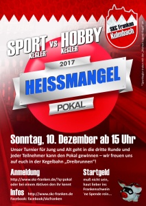 Hier treffen die Sportkegler des SKC Franken auf alle Teilnehmer, die sich an die Kegelkugel wagen und in entspannter Atmosphäre hier ein paar Schub machen wollen - idealerweise um sich den Heißmangelpokal 2017 zu sichern.