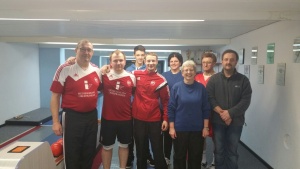 Nein, natürlich nicht. Durch den beherzten Einsatz mit einer klasse Montagsleistung außerhalb des aktiven Kegelsports, konnten Opi und Maximum den Defekt beheben. Der Sensor an der Lichtschranke für den Übertritt auf Bahn 1 ging nicht mehr.
