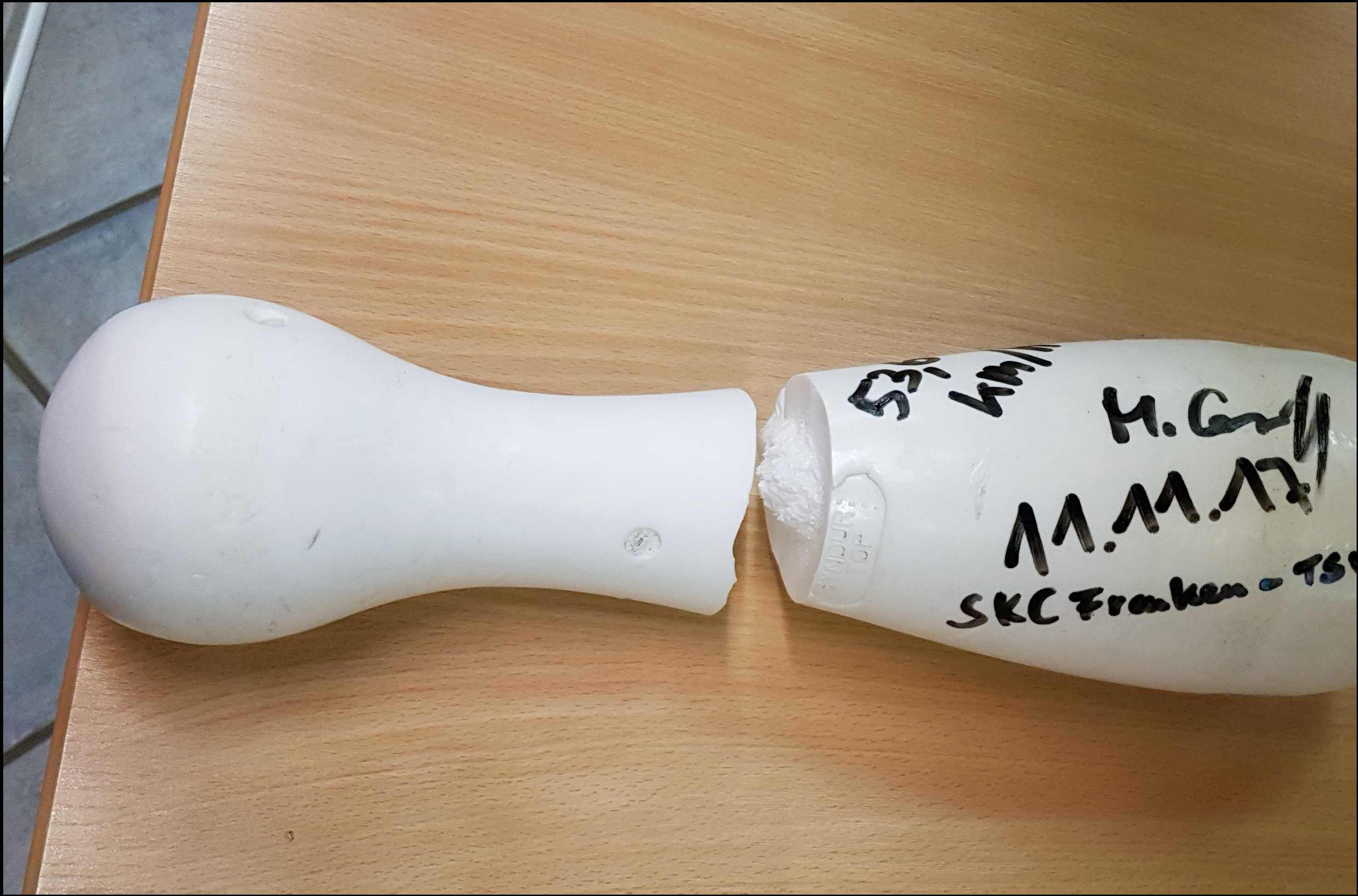 Nein, natürlich nicht. Durch den beherzten Einsatz mit einer klasse Montagsleistung außerhalb des aktiven Kegelsports, konnten Opi und Maximum den Defekt beheben. Der Sensor an der Lichtschranke für den Übertritt auf Bahn 1 ging nicht mehr.
