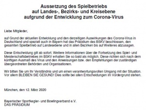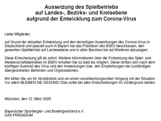 Die Vorsorgemaßnahmen bzgl. "Corona / SARS-CoV-2 / Covid-19" betreffen nun auch den Kegelbetrieb in allen Klassen.