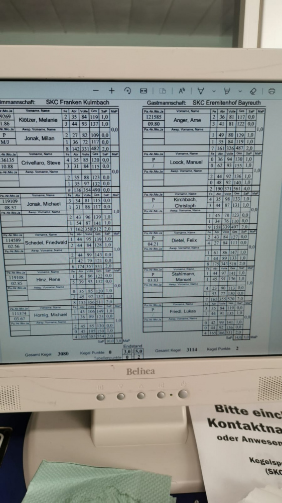 Final ging das Spiel erwartungsgemäß 3:5 (3080:3114 Holz) verloren, was aber der ganzen Sache keinerlei Abbruch tat.