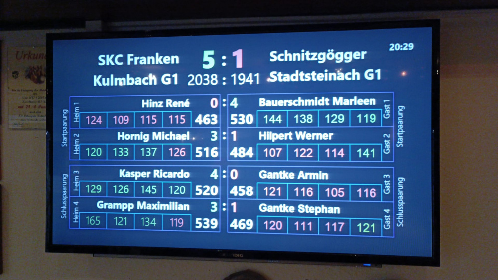 SKC Franken Kulmbach G1 : Schnitzgögger G1 2038:1941 (5:1)