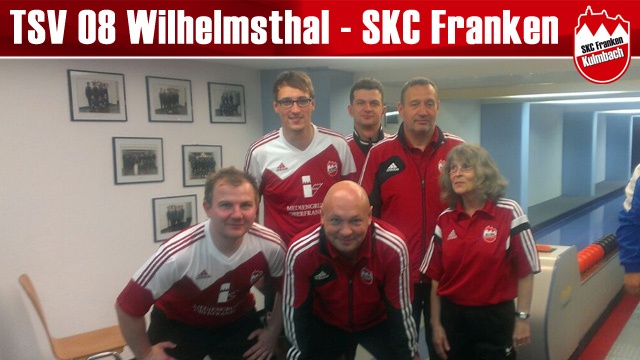 Trotz einem abermals starkem Ergebnis kehrte die Mannschaft des SKC Franken am Freitag mit leeren Händen aus Wilhelmsthal zurück. In einem bis zur letzten Kugel spanndenden Spiel, hatten die Hausherren zunächst bis zur Halbzeit stets die Nase leicht vorn. Andreas Busse (391) musste zum Start 39 Holz abgeben. René Hinz (419) konnte wiederum 33 Holz zu einem 6 Holz Rückstand aufholen. Matthias Heinrich, mit starken 441 Holz, brachte die Franken zur Halbzeit erstmals mit 14 Holz in Führung. Michael Jonak (378) verlor 58 Holz auf seinen Gegner zu einer 44 Holz Führung der Wilhelmsthaler. Der wiedergenesene Marco Jonak spiele abermals mit 452 Holz die Tagesbestleistung und brachte die Franken nochmals auf 19 Zähler ran. Patrick Drechsel (418) konnte bereits nach 50 Schub schon 14 Holz aufholen. Im Krimi der letzten 50 Schub musste er jedoch wieder 7 Holz an seinen Gegner abtreten, was am Ende eine hauchdünne 12 Holz Niederlage für den SKC Franken bedeutete.