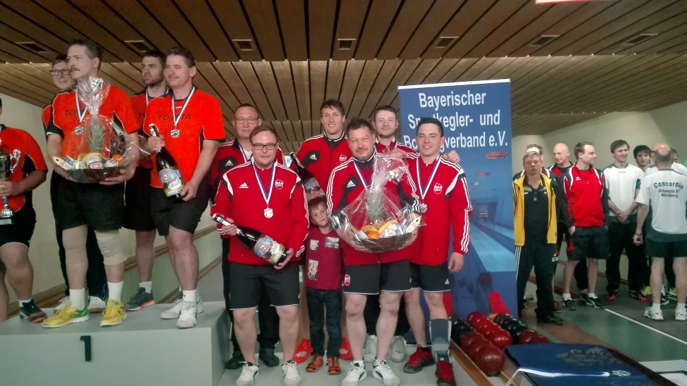 In den ersten beiden Durchgängen haderte Max zunächst noch mit der Bahn, konnte aber Boden auf Heustreu gut machen. Sein direkter Gegner aus Huglfing hielt jedoch mit. Im dritten Durchgang schaltete Max einen Gang höher und schnappte sich Rang drei. Nun galt es diesen vorallem gegen Huglfing zu verteidigen. Mit einem weiteren starken Durchgang behielt Max die Nerven und holte auf den letzten Würfen im Abräumen souverän die nötigen Holz um Huglfing und Heustreu hinter sich zu lassen. Was dem Team aus Kulmbach die Bronzemedaille bescherte. Nach dem missglückten Start ein riesiger Erfolg für den oberfränksichen Pokalsieger. Gold ging an das Team aus Gernlinden mit 2122 Holz, Silber an den TSV Egweil mit 2091 Holz. Der SKC Franken spielte am Ende 2071 Holz.