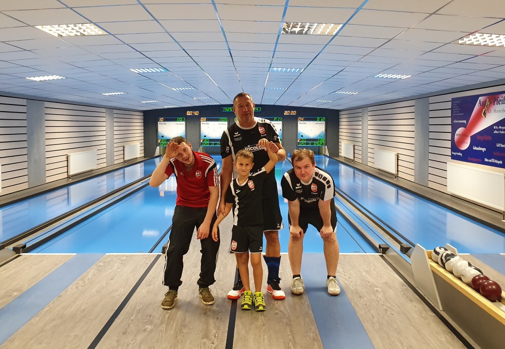 In der Schlußpaarung gingen dann Patrick Drechsel und Michael Jonak in die Bahn, mit der Hoffnung vielleicht doch noch was zählbares mit nach Hause zu nehmen. So fing "Opi" wie entfesselt an und kegelte 167 Holz. Sein Gegner, Mike Fleischhauer kam auf 112 Hiolz. Auf der anderen Seite hatte es "Bada" mit Bernd Scheibe zu tun. Mit 127 Holz zu 118 Holz für den Franken holten beide im ersten Durchgang gleich 64 Holz zurück. Nun keimte wieder Hoffnung auf, das Spiel doch noch zu drehen. Die Durchgänge zwei und drei (123:110 und 121:112) holte sich M. Fleischhauer gegen M. Jonak und führe sogar noch 2:1. Auf der anderen Seite lies sich Patrick nicht beirren und zog sein Spiel konsequent durch. Das Ergebnis spricht für sich 529 Holz zu 480 Holz und 4;0 Punkte für den Franken. Im Schlußdurchgang musste Michael senen Punkt holen und einige Holz gut machen. Dies gelang dem "Alten" und er holte sich mit 138 Holz zu 124 Holz seinen Punkt zum unentschieden. Bei einer Punkteteilung und 527:480 Holz für den Franken gewann man unter frenetischem Jubel und Anfeuerungen der zahlreichen Zuschauer das Spiel noch mit 1925 zu 1941 Holz und 2:4 Punkten.