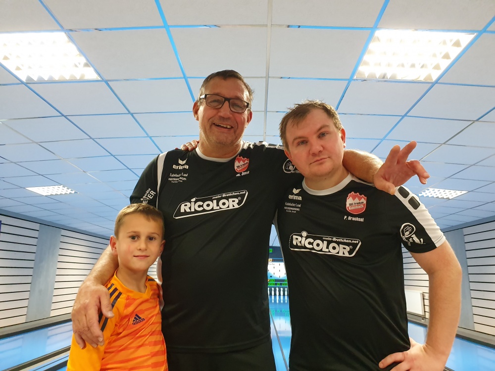 11 Holz Vorsprung bei 1:1, stellten somit eine gute Grundlage für die „erfahrenen“ Michael Jonak und Patrick Drechsel dar. In den Schlussdurchgängen konnten die beiden dann direkt punkten und mit 128:119 und 126:118 die Führung ausbauen. Im zweiten Satz schnappte sich Thorsten Greulich das 1:1 gegen Michael Jonak (124:115). „Bada“ legte nach. Mit 140:112 brachte er sich in gute Position auf den wichtigen zweiten Mannschaftspunkt. Im dritten Satz hatte Michael Jonak seinen Gegner wieder im Griff und sicherte mit 122:101 das 2:1. Patrick Drechsel konnte mit 104:104 und einer Satzpunkt-Teilung gar vorzeitig seinen Mannschaftspunkt zum 0:2 für sein Team sichern. Die aufgelaufenen 68 Holz Vorsprung ließen den Gastgebern kaum noch Hoffnung auf den Sieg. Zudem führte Michael Jonak mit 21 Holz in seinem Duell, was keine Überraschungen mehr zu lassen sollte. Im letzten Durchgang spielte „Opi“ mit 144 Holz den besten Satz des Abends und sicherte sich und seinem Team souverän den dritten Mannschaftspunkt. Patrick verpasste nebenan mit 119:125 knapp seinen dritten Satzgewinn was jedoch keine Auswirkungen auf das Endresultat von 5:1 (1917:1828) hatte.
